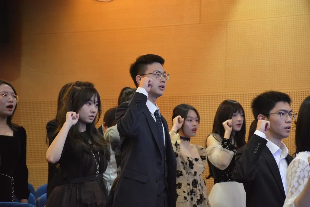 一枚成人徽章,是学校为H4学子们准备的特殊礼物,小小的徽章别在胸膛,成人的责任与担当从此搁在心上。随后在主持人的带领下,同学们举起右手庄严宣誓。