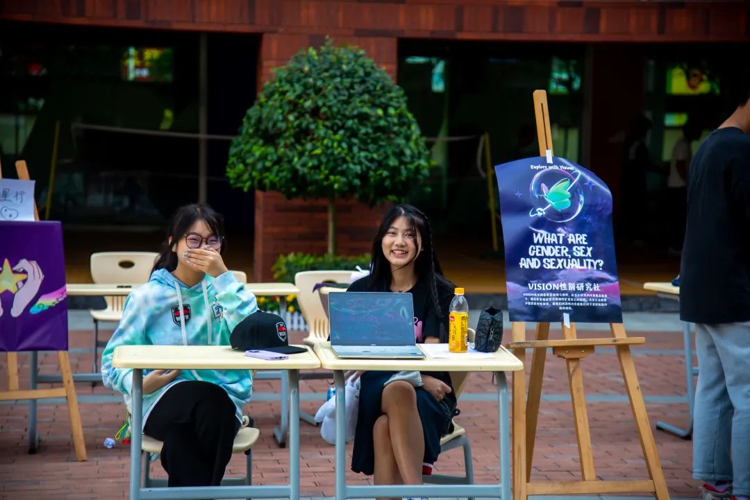 ▲各个社团在市场进行招新活动