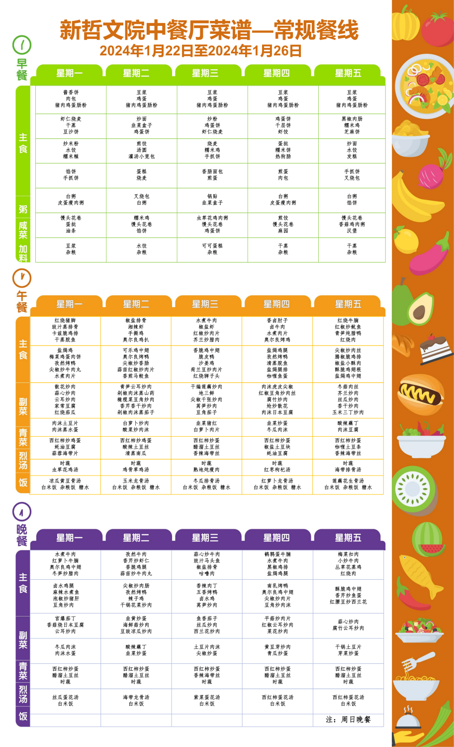 Weekly Menu | 新哲文院一周菜单(1.22-1.26)