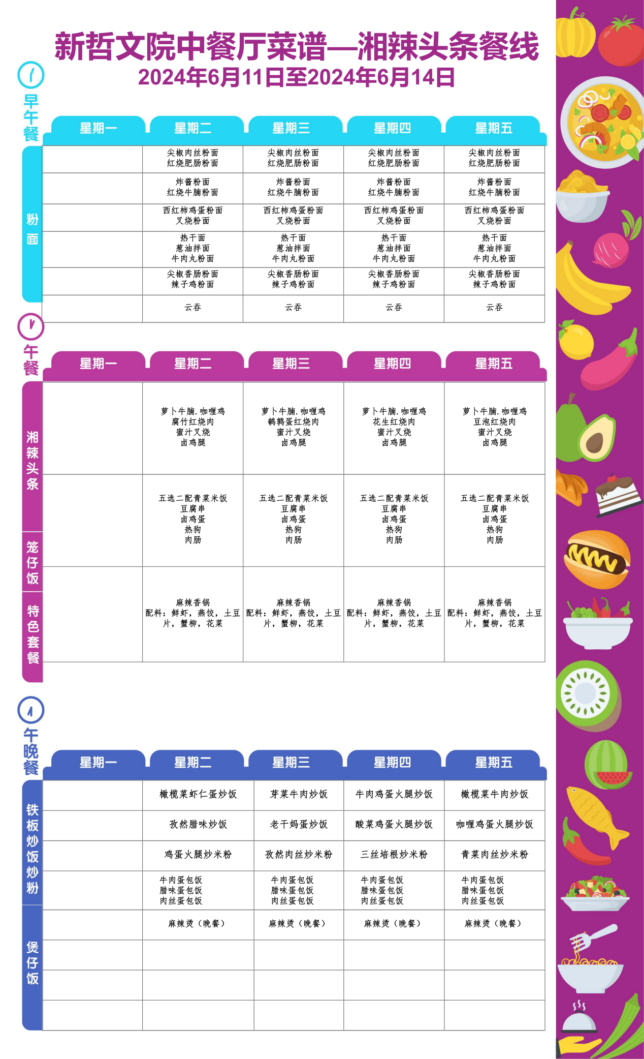 Weekly Menu | 新哲文院一周菜单(6.11-6.14)