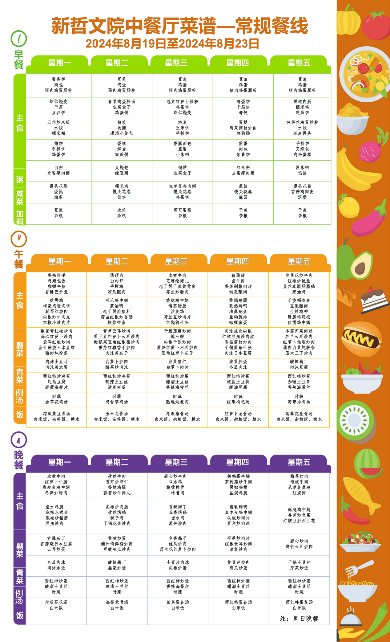 Weekly Menu | 新哲文院一周菜单(8.19-8.23)