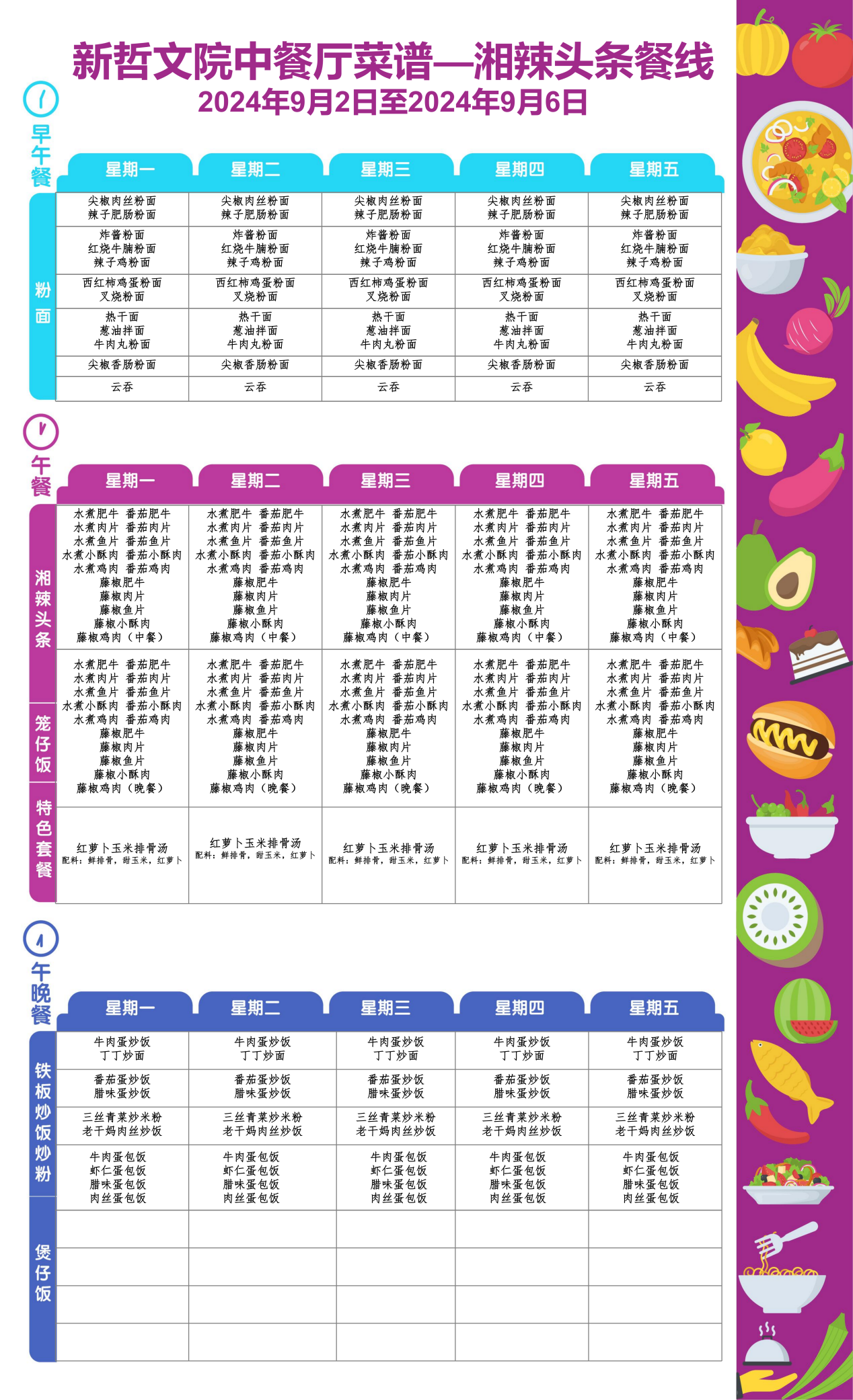 Weekly Menu | 新哲文院一周菜单(9.2-9.6)