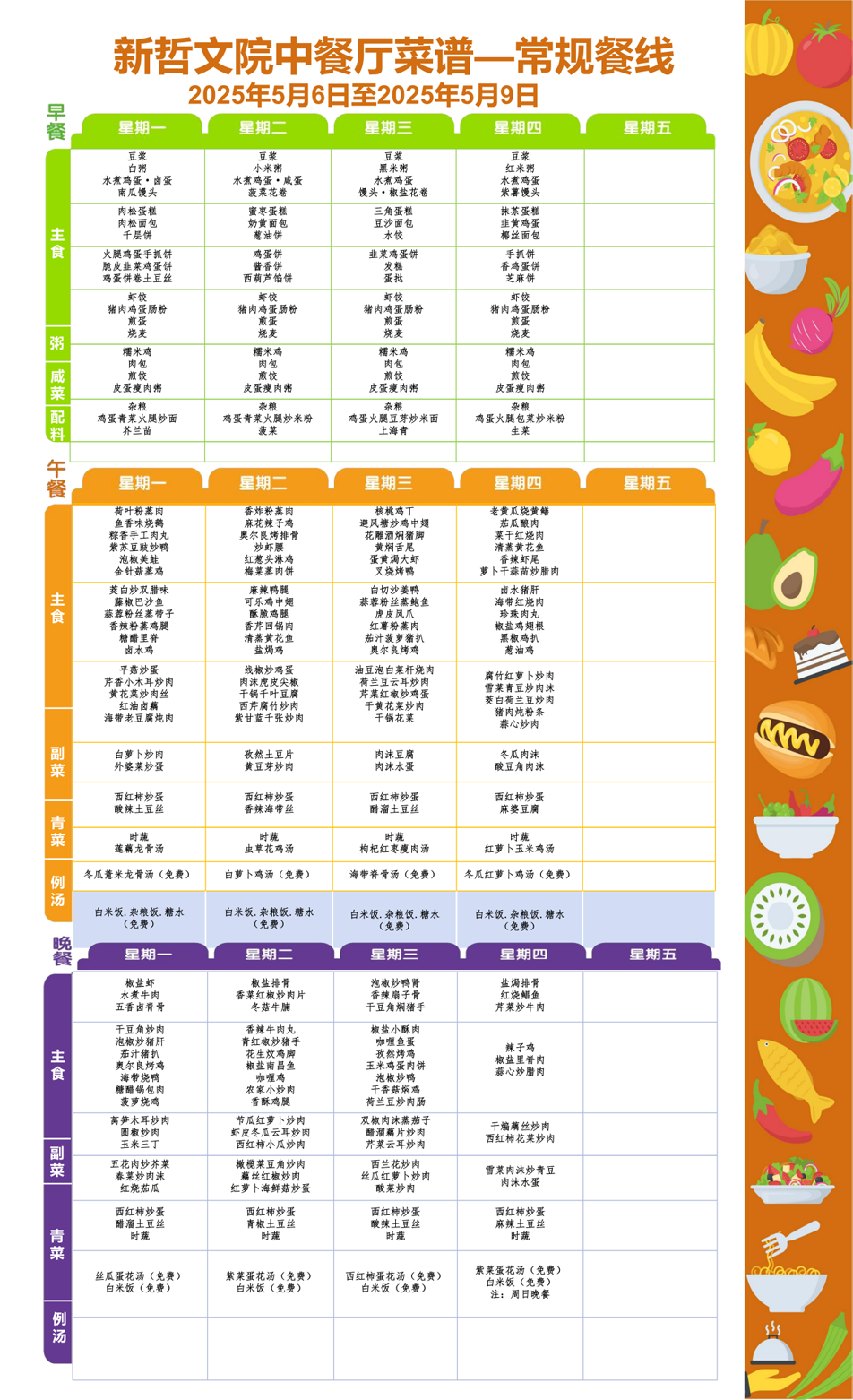 Weekly Menu | 新哲文院一周菜单(5.6-5.9)