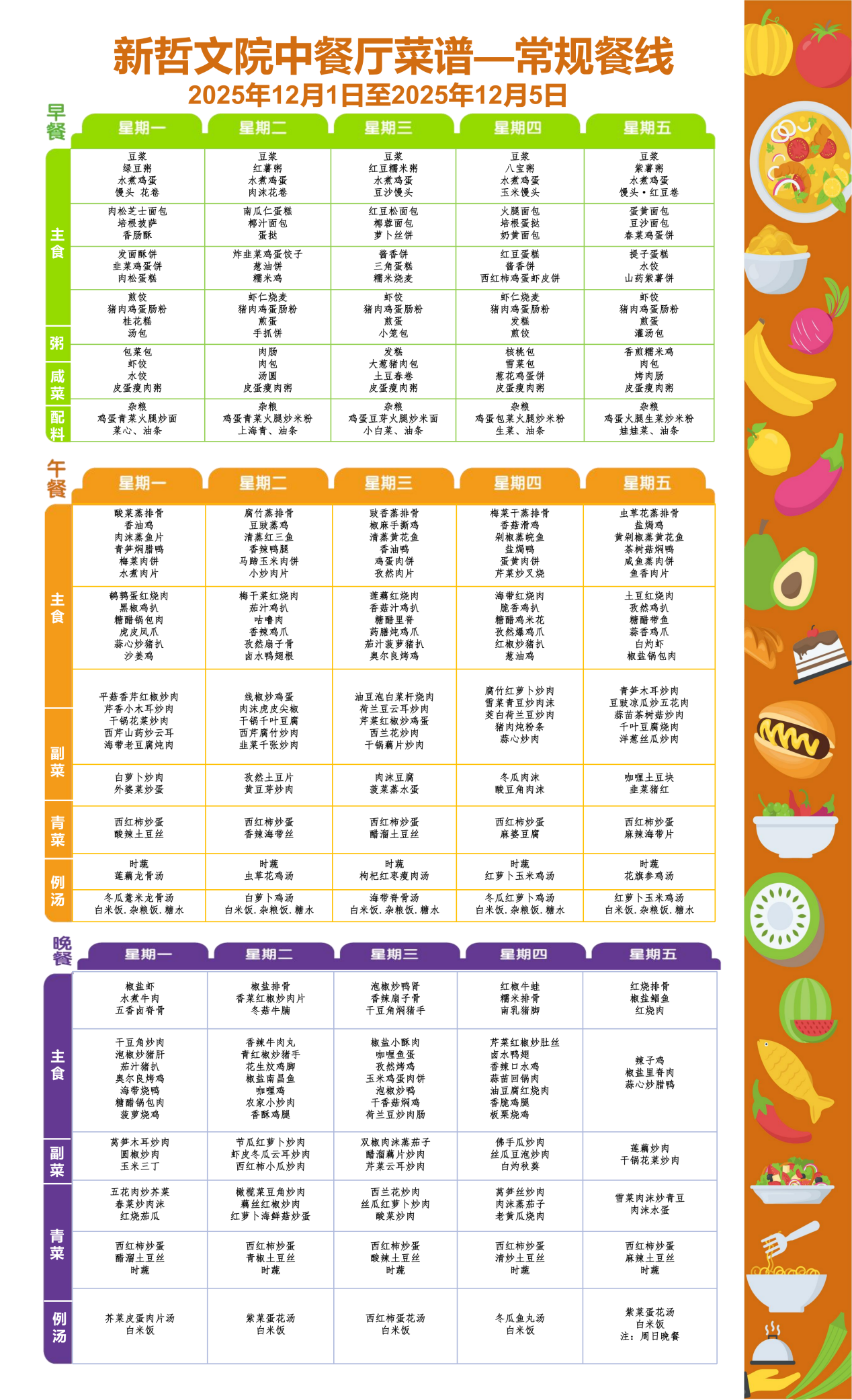 Weekly Menu | 新哲文院一周菜单(12.1-12.5)