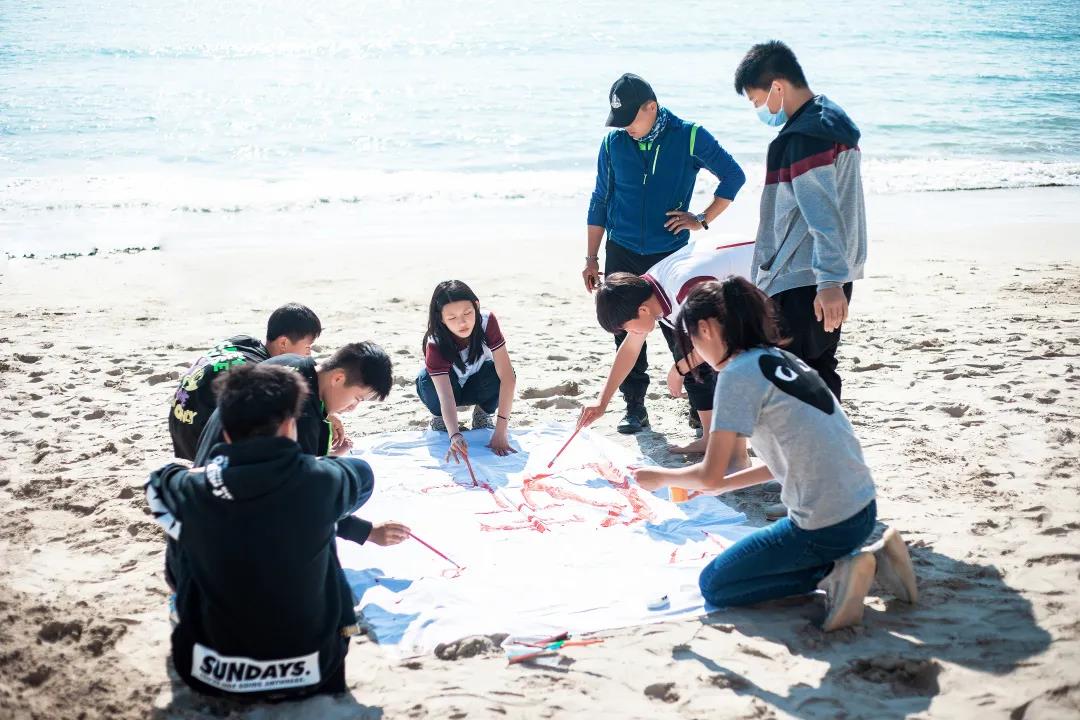 最终,由新哲书院全体初中部学生共同完成的一幅巨大的“新哲书院”画卷平铺在沙滩上。这一承载着同学们满满回忆和祝愿的画卷,将会伴随他们走过2021,奔赴美好前程!