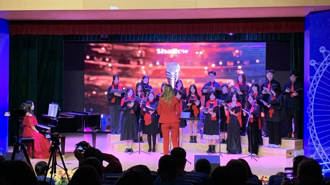 ▲Rachael (右三)在双旦晚会担任主持人