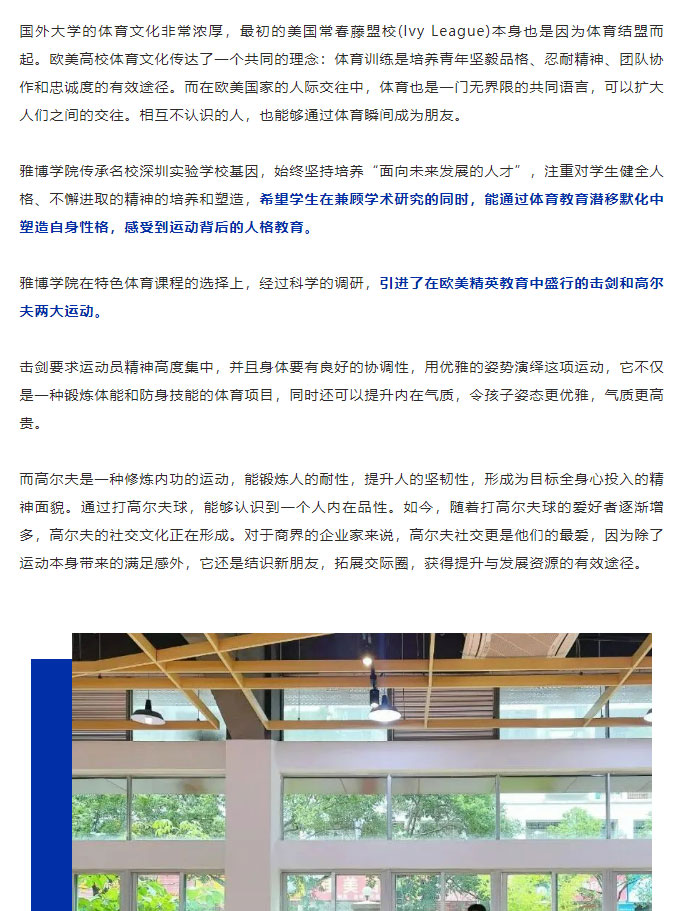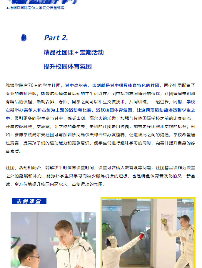 高尔夫、击剑特色课,体育专项班,雅博学院以“体”赋能,持续创新升级