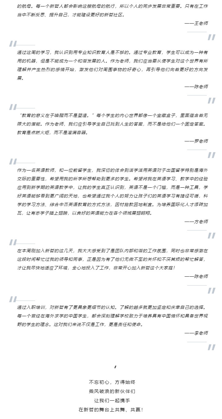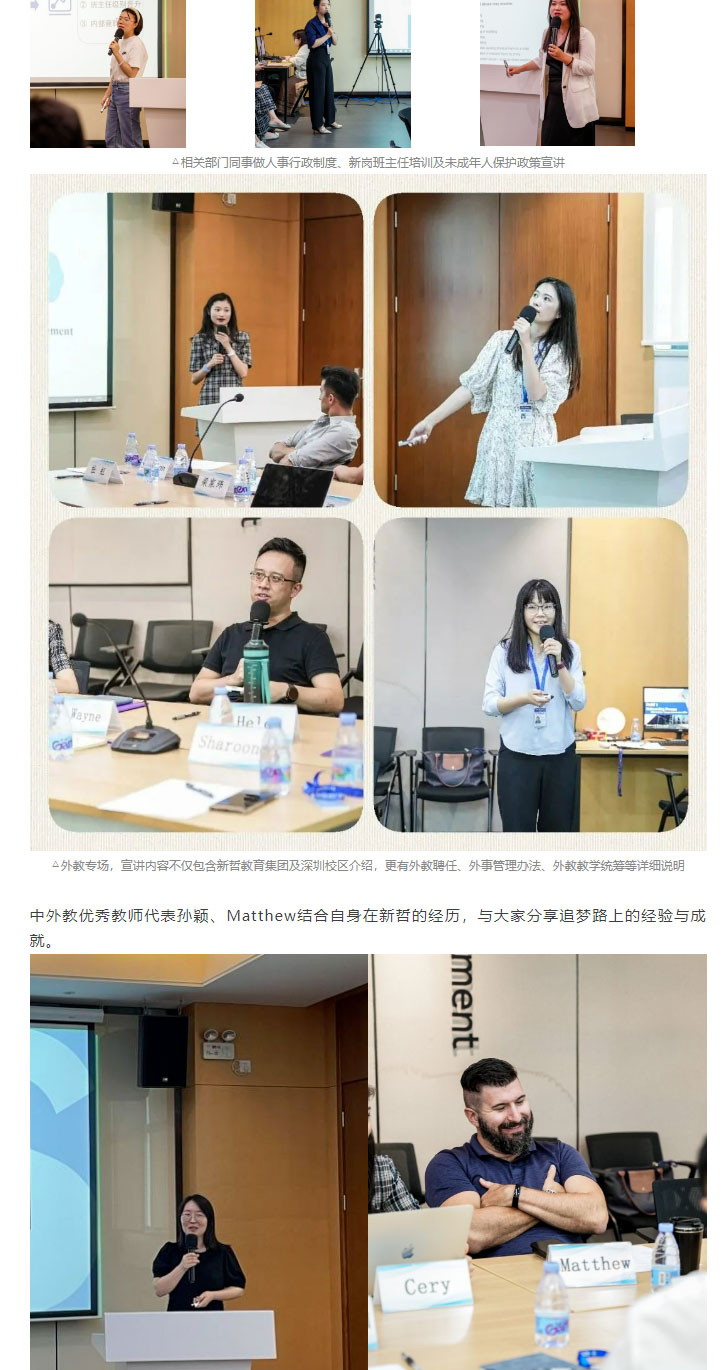 为使新员工对我校有一个全方位的了解,认识并认同新哲的文化与理念,明确自身的岗位职责、工作任务和目标,尽快进入岗位角色,8月1日及7日,我校举行2023暑期新员工入职培训。校领导Helen、包放出席,相关职能部门工作人员及30余名中外教新员工参与。