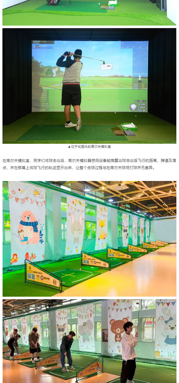 配套整齐的球杆、**的高尔夫模拟器、现代化的室内练习场地、宽敞充足的练习打位......这不是高尔夫球会,是雅博学子日常上体育课的地方!