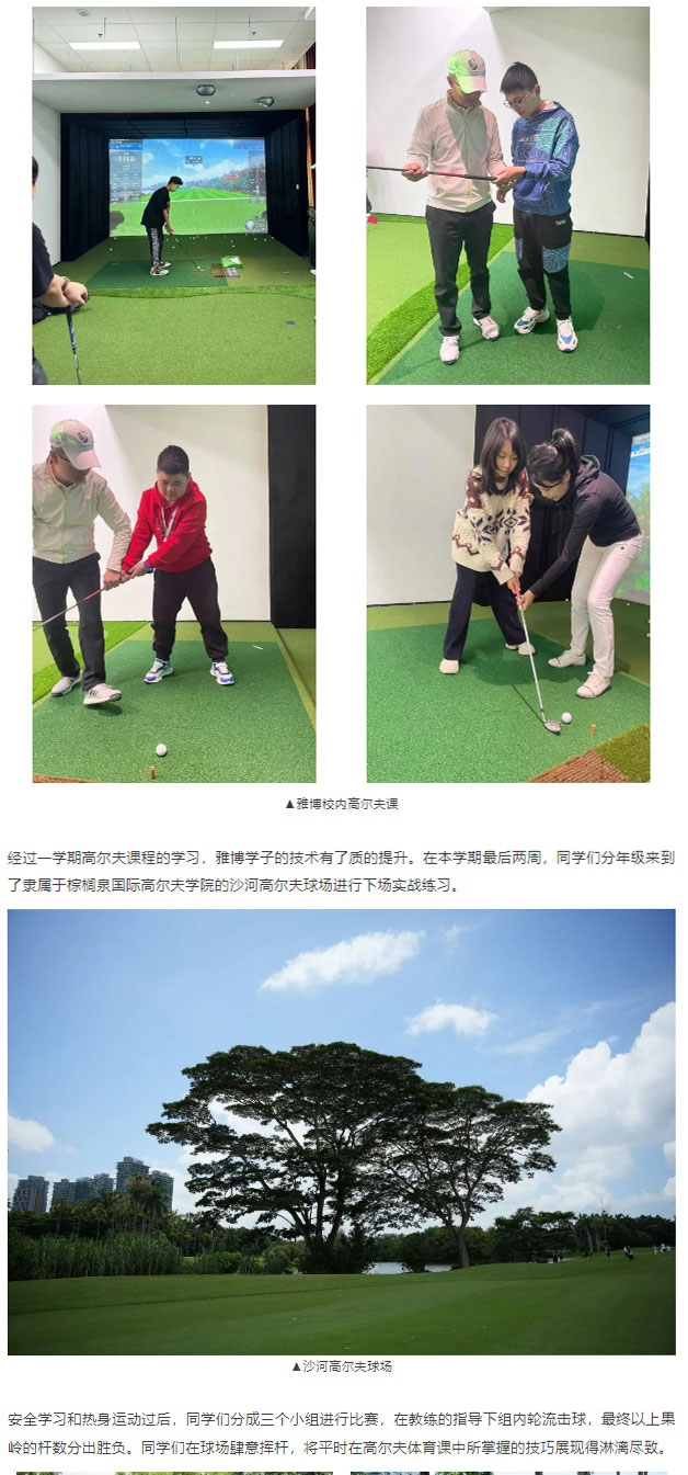 随着新哲高尔夫模拟室和室内练习场在校内落成,高尔夫课也被纳入新哲雅博学院的体育课程体系。