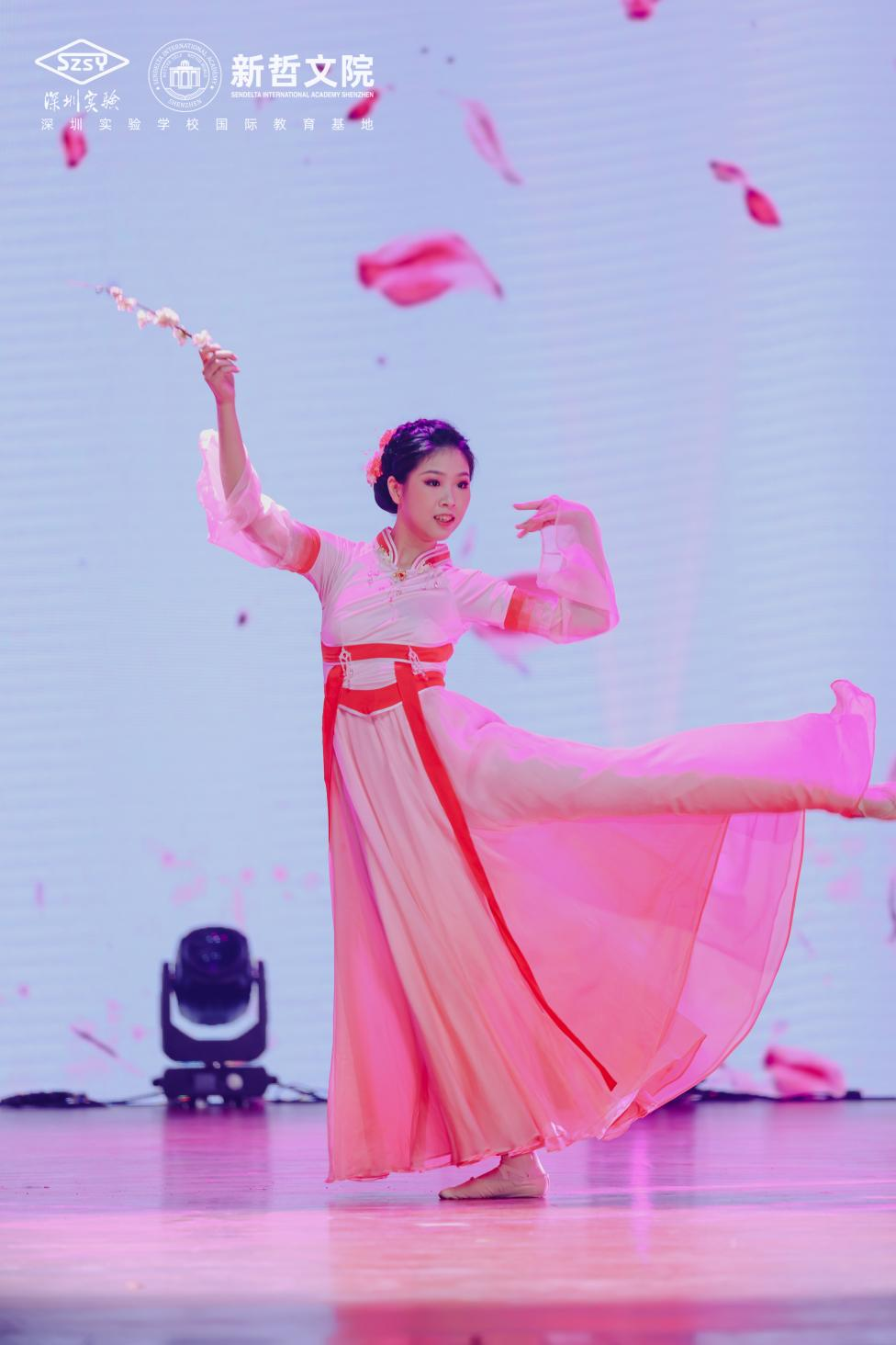 梅花香自古寒来,梅花与少女融为一体,翩翩起舞、随风而动,展现出梅花从独自凌寒绽放到孤芳自赏、春回大地直至默默隐退的故事。