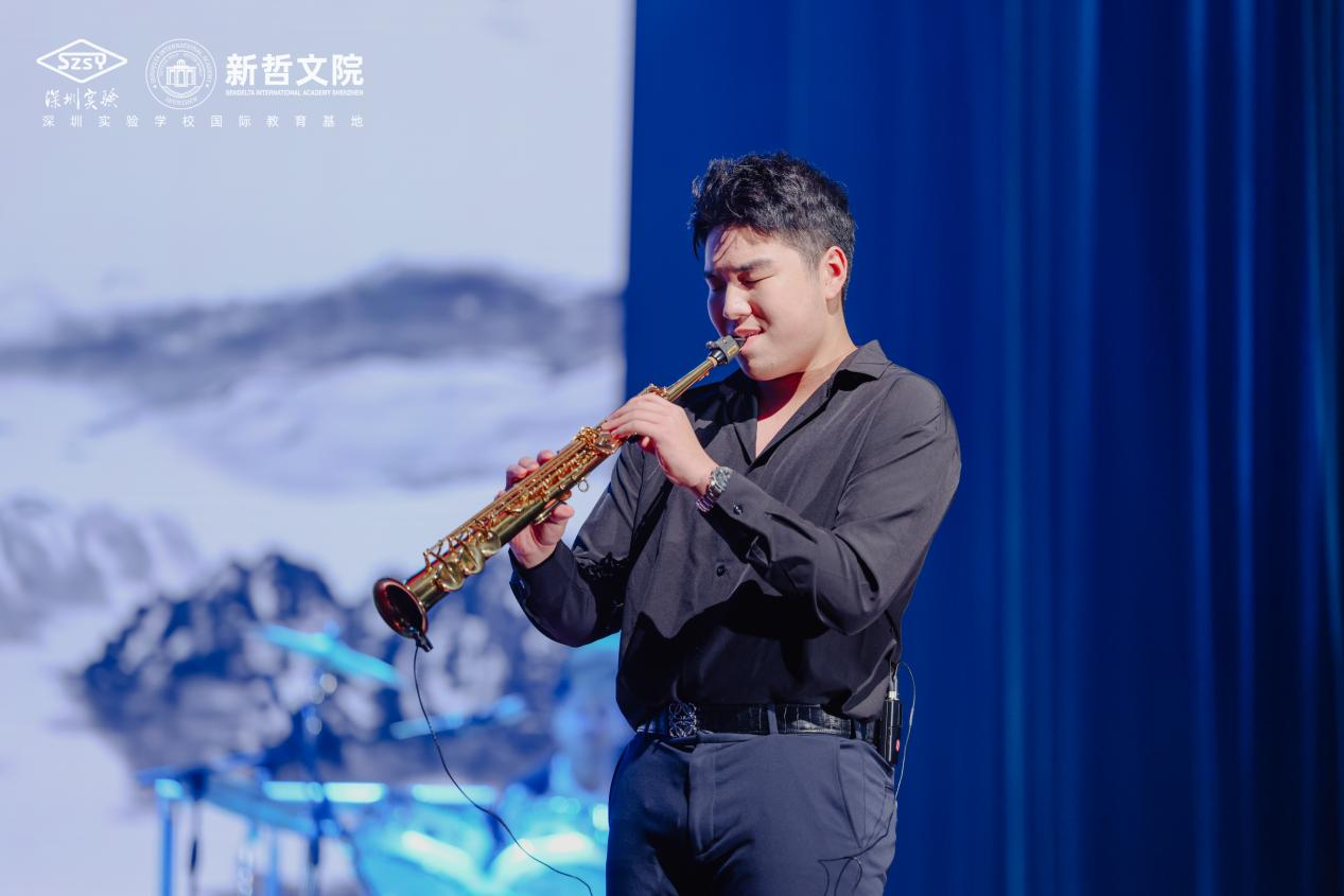 两位同学带来的萨克斯演奏《Dance Monkey》令人眼前一亮。他们轻盈欢快的演奏风格以及充满活力的装扮为整个会场注入了浓厚的欢乐氛围。这首曲子节奏明快、令人回味无穷,其独特的音色和迷人的旋律让人陶醉其中!