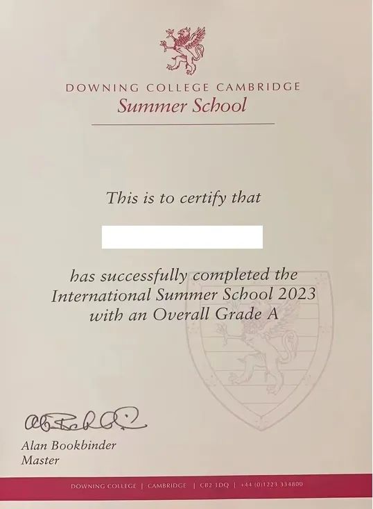 每门课程中表现**的学生将收到一封该剑桥夏校责人的推荐信,以表彰他们在课程中取得的成就。