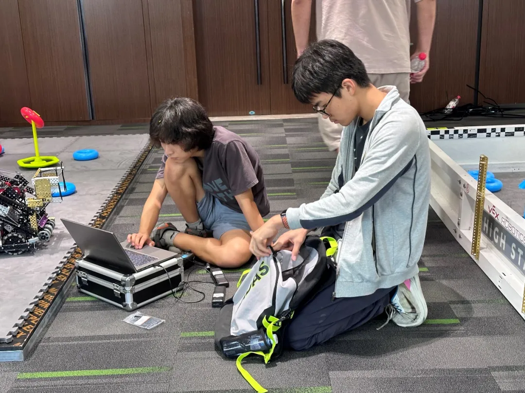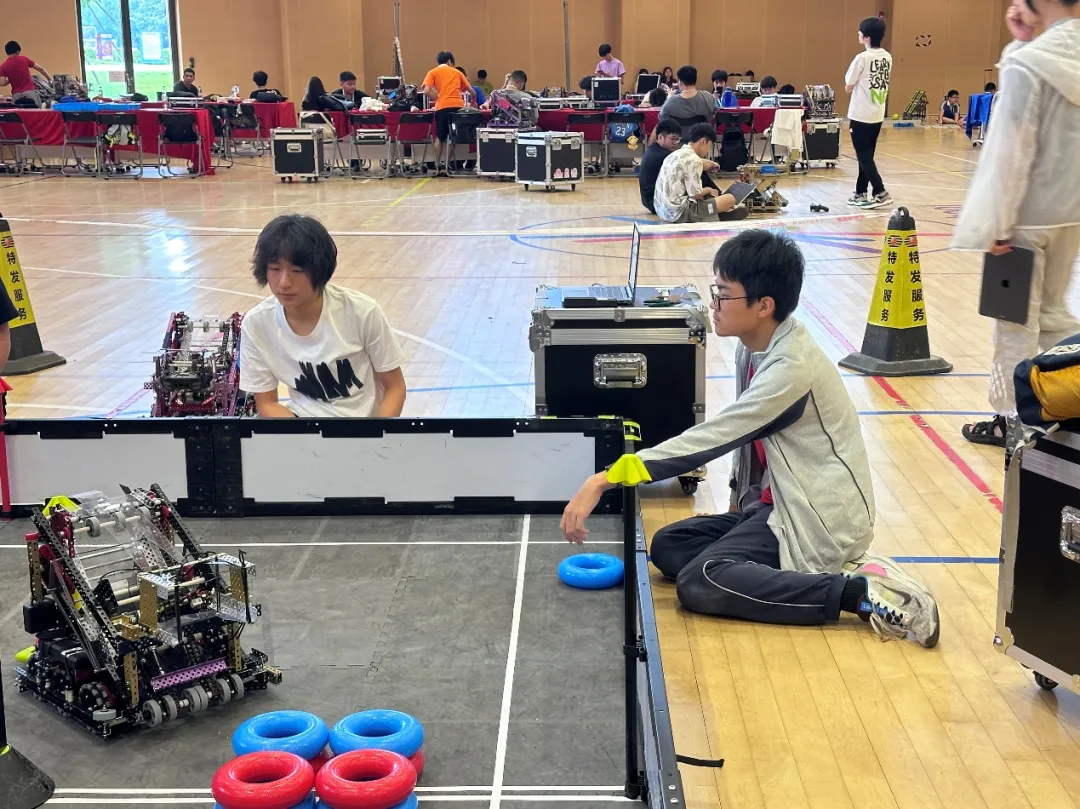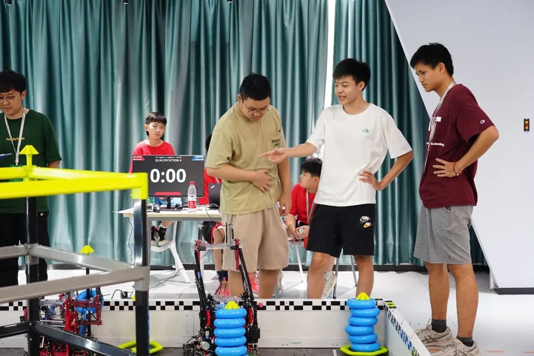 东莞城市赛成绩 高中组25426Z(Gavin、Thomas、Derek) 淘汰赛团队协作** 资格赛排名第四 高中组81818C(David Huang、Ridge) 资格赛排名第七 **创意奖及二等奖荣誉 淘汰赛八强 高中组81818A(Eric、Season、David Zhao) 资格赛排名第十 淘汰赛八强 **创新奖及三等奖荣誉 初中组81818V(Jay) 资格赛排名第五 淘汰赛前六 **活力奖及二等奖荣誉 这次比赛4支队伍的所有同学都在比赛中展现出了自己的风采和努力,都值得我们点赞。有几位同学虽然是**次参赛,但前期花费了大量时间训练,在赛场上表现同样非常亮眼! 同学们在忙碌的暑假不遗余力备战 VEX 机器人比赛,有的同学甚至连续几天奋战到后半夜,如此专注用心,让老师也为之动容。赛前,同学们参加了一周集训,在这期间完善机器方案,搭建、训练机器人。集训后,同学们满怀对新赛季**场赛事的期待,一有时间便专注于机器人训练。 81818A队Eric、Season、Evan、David Zhao 四位同学已经有过一个赛季的参赛经验,加上新入社的David Zhao同学,他们四个配合相当默契,Season同学更是**次作为操作手踏上擂台,在深圳城市赛默契配合,拿到了季军荣誉。03竞赛掠影