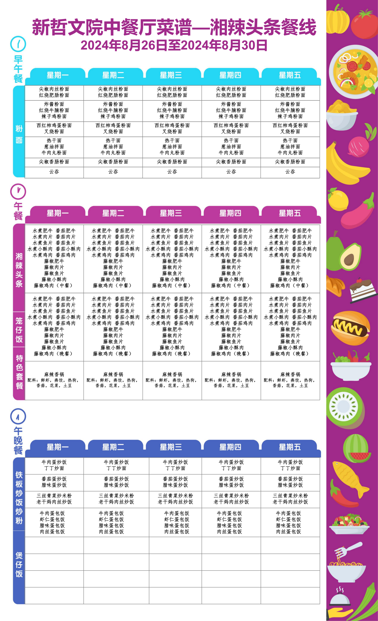 Weekly Menu | 新哲文院一周菜单(8.26-8.30)