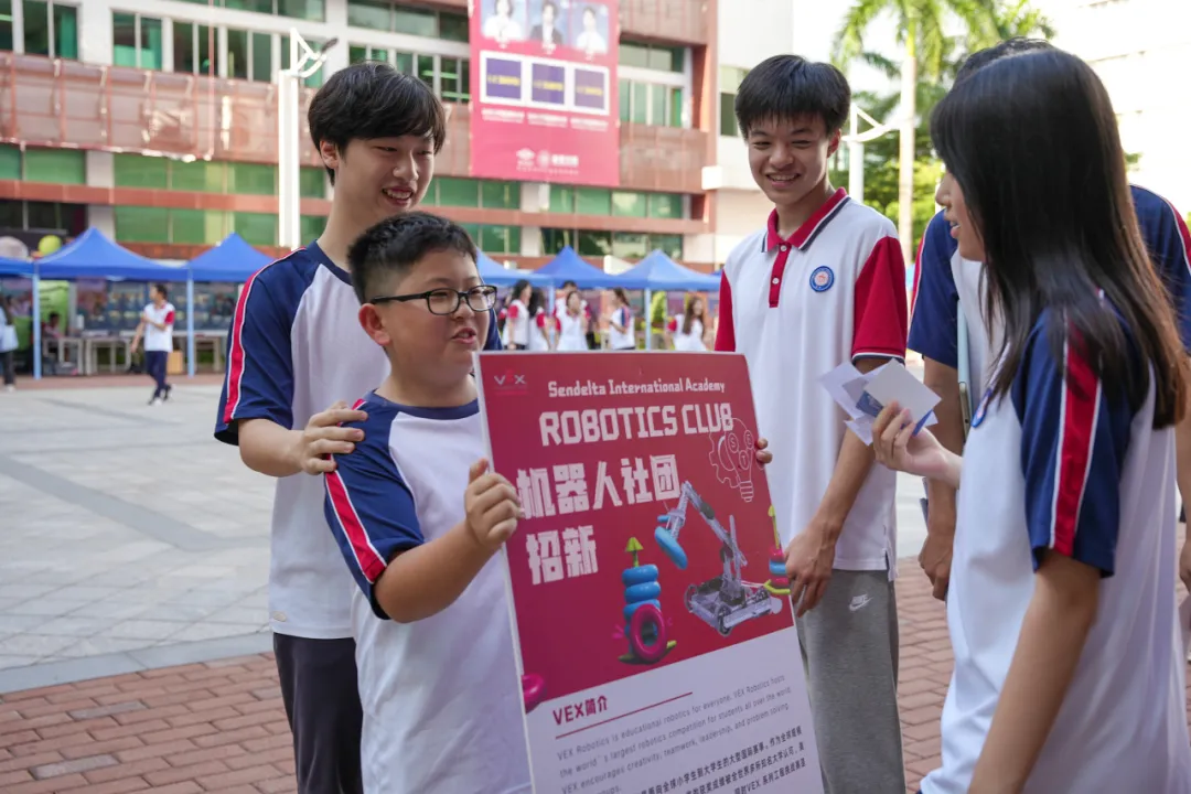 9月5日,深圳新哲文院的喷泉广场化身为一个充满无限可能的世界——新学年社团招新展火热开启,4大领域、70个充满个性与活力的社团如同一扇扇大门,为学生们打开了一段充满探索与成长的旅程。无论是热衷艺术、痴迷科技,还是希望在辩论场上锋芒毕露,每个人都能在这里找到属于自己的天地。