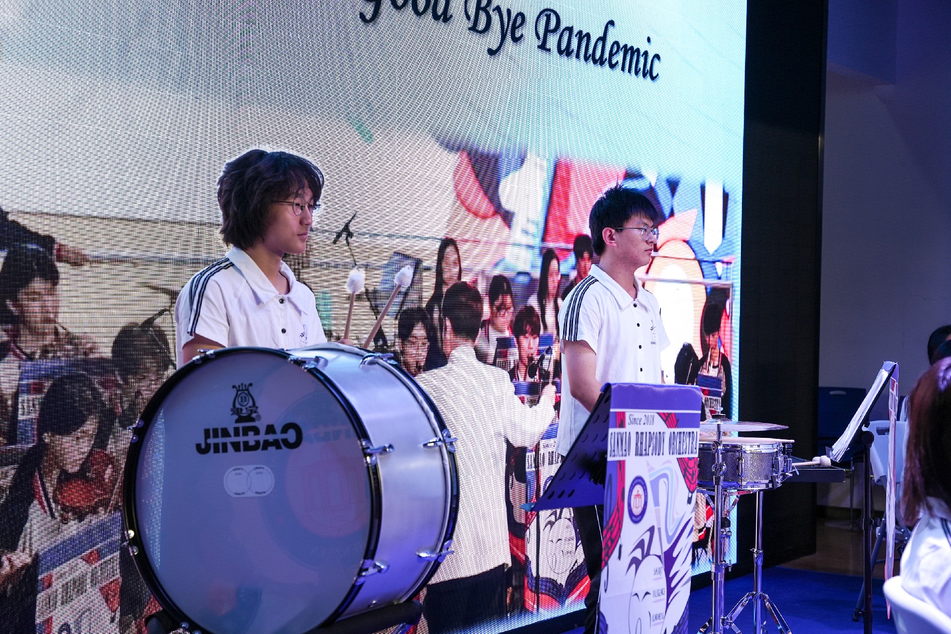 三毛管弦乐团特别选取了曾在第十七届韩国城南青年音乐节上受到观众和评委的一致好评的《春节序曲》和《VII. Good Bye Pandemic》。值得一提的是《VII. Good Bye Pandemic》是Kay老师原创。这位已在我校任教7年的韩籍外教,毫无保留将他的跨文化沟通和多元文化融合视角传递给新哲学子,他说“音乐无国界,要用音乐去讲故事、去传达情绪。”