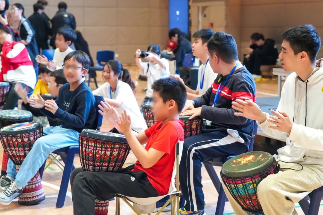 所有参与者围坐一圈,跟随节奏共奏非洲鼓,在鼓点的共鸣中感受彼此的存在与联结。这一刻,语言不再是障碍,音乐成为情感沟通的桥梁,孩子们的脸上洋溢着纯粹的幸福笑容,为本次活动画下温暖的句点。