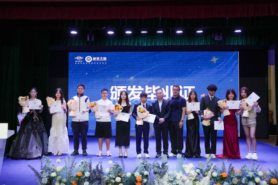 新哲文院执行校长许盛贵先生上台,为同学们颁发结业证书并合影留念。让我们用镜头定格荣耀,用证书见证成长。